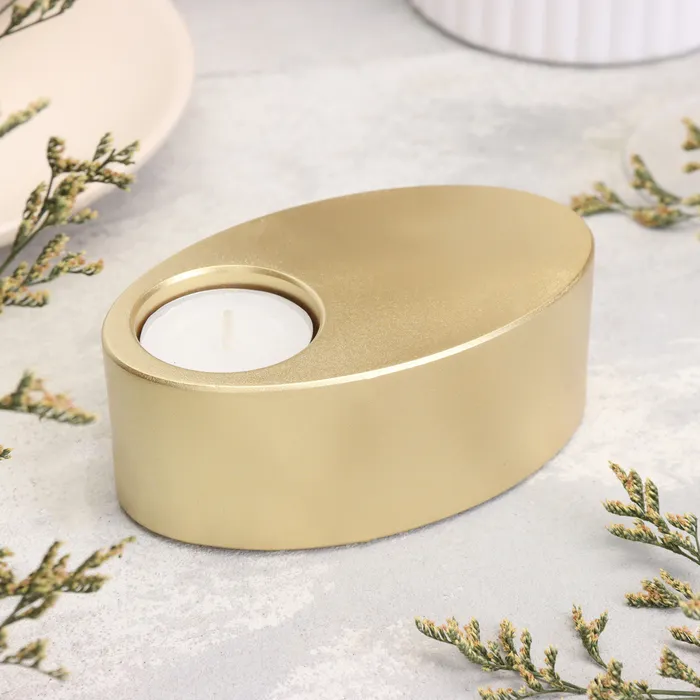 Подсвечник "Узкий овал. Мрамор" из гипса,11,5х7х4см, золото