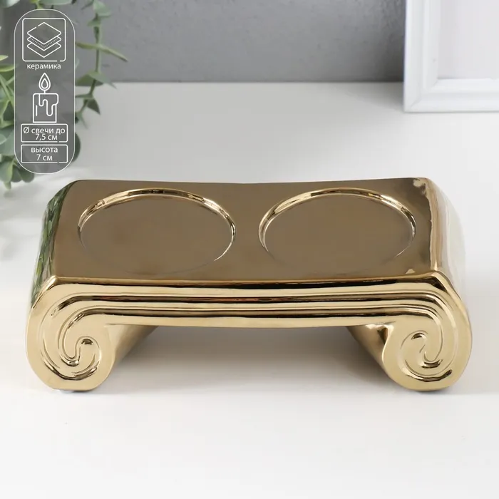 Подсвечник керамика на 2 свечи «Греция», d=7.5 см, золото, 22.5×10×7 см