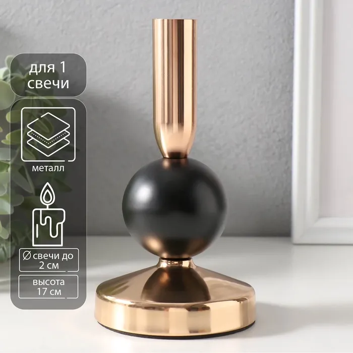 Металлический подсвечник на 1 свечу «Продо», чёрный, d=2 см, 9×9×17 см