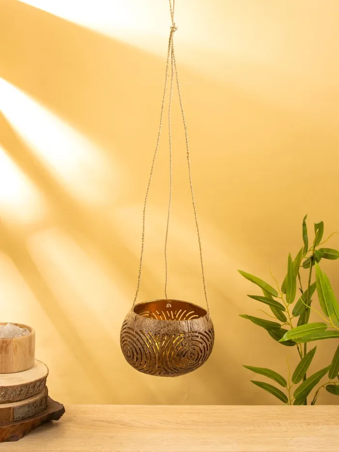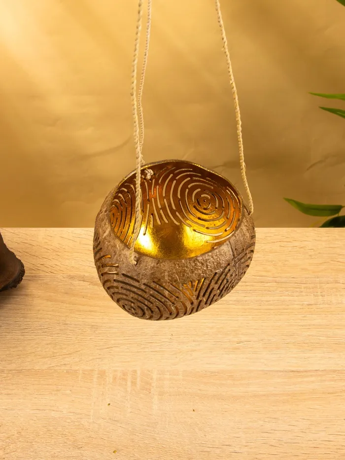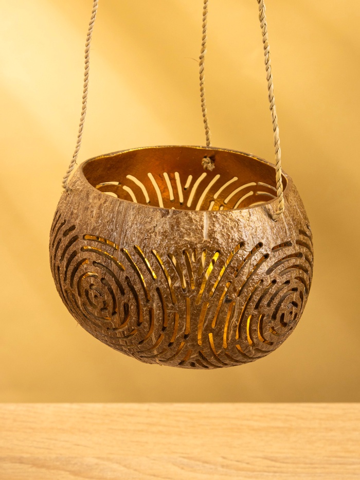 Подсвечник подвесной из кокоса, 13-17 см, коричневый