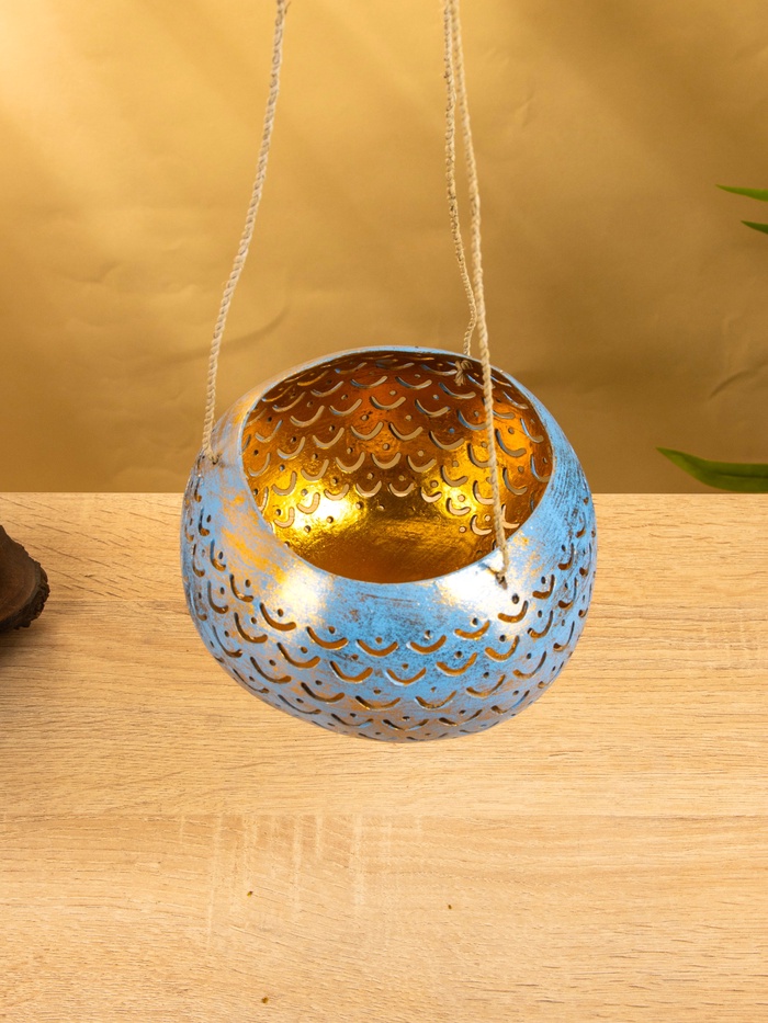 Подсвечник подвесной из кокоса, 14-16 см, сине-золотой — Характеристики