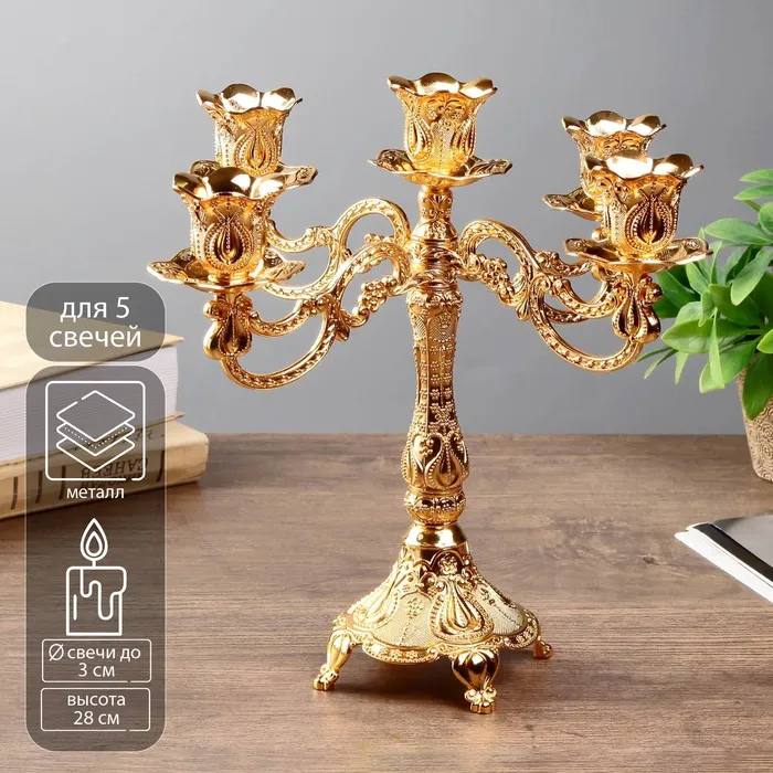 Металлический подсвечник на 5 свечей «Канделябр. Узорный», золото, 28×26×26 см