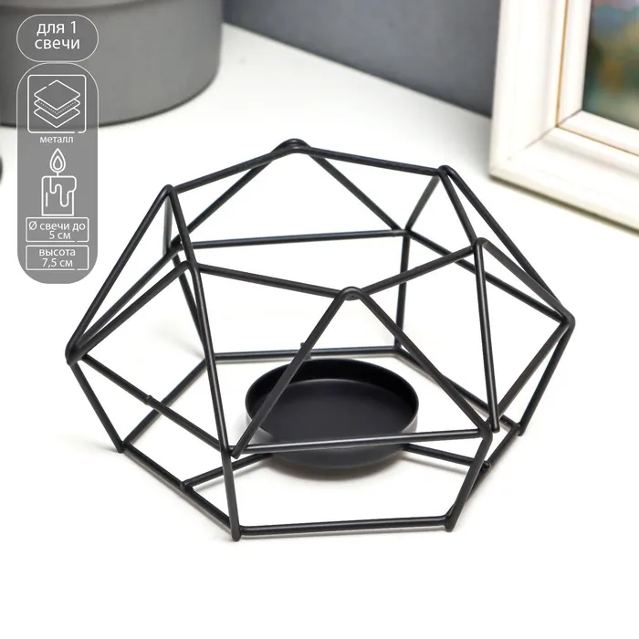 Металлический подсвечник на 1 свечу «Тетраэдр», чёрный, 7×15×13.5 см
