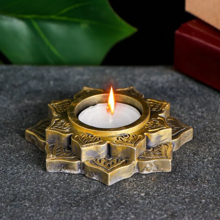 Подсвечник на 1 свечу «Восточный мотив», гипс, старое золото, 10×2 см