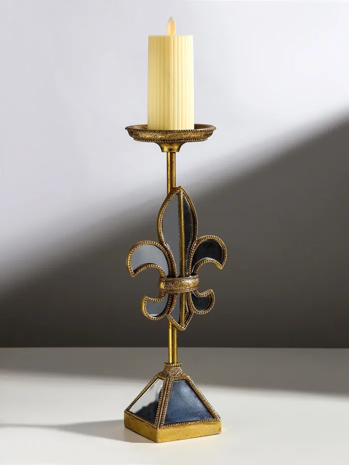 Подсвечник на 1 свечу «Зеркальная геральдическая лилия», полистоун, 14×11×38.5 см