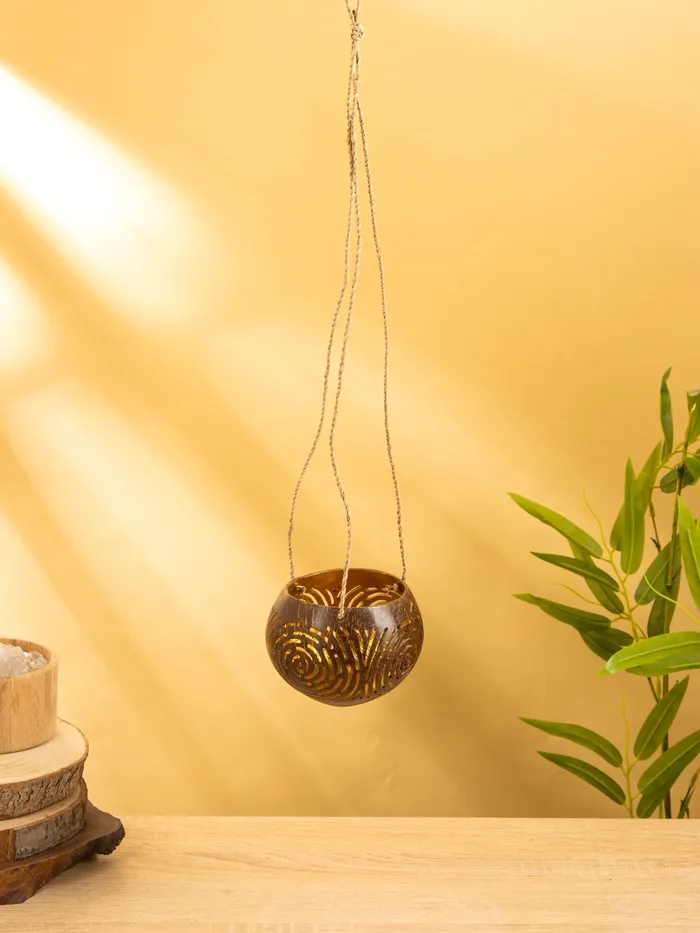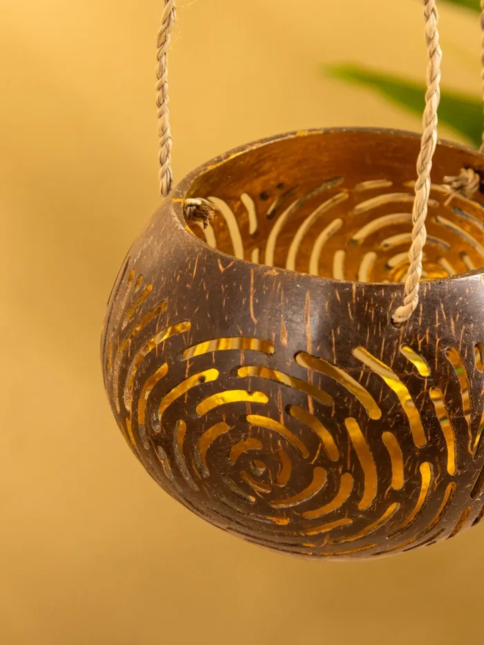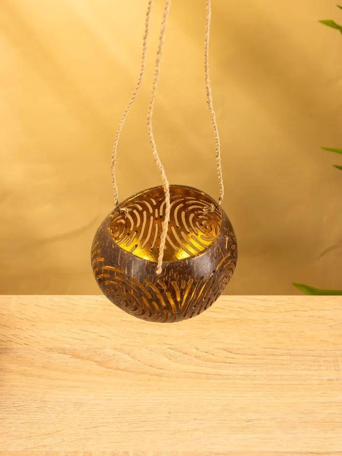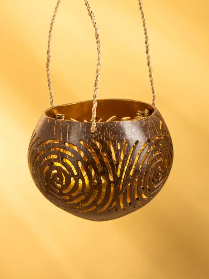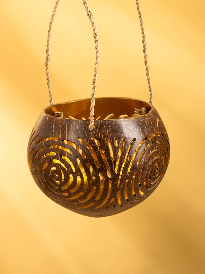 Подсвечник подвесной из кокоса, 9-12 см, коричневый