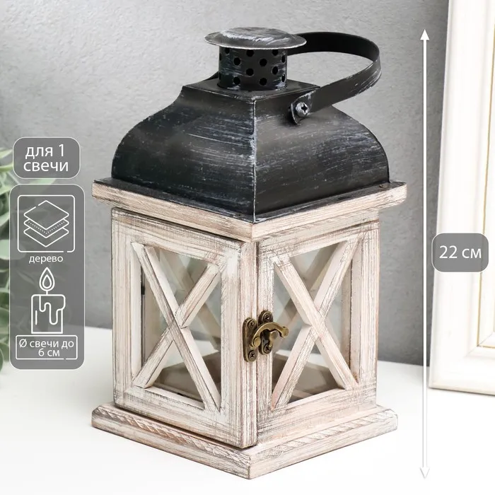 Деревянный подсвечник-фонарь на 1 свечу «Ставни», состаренный, 22×11.5×11.5 см
