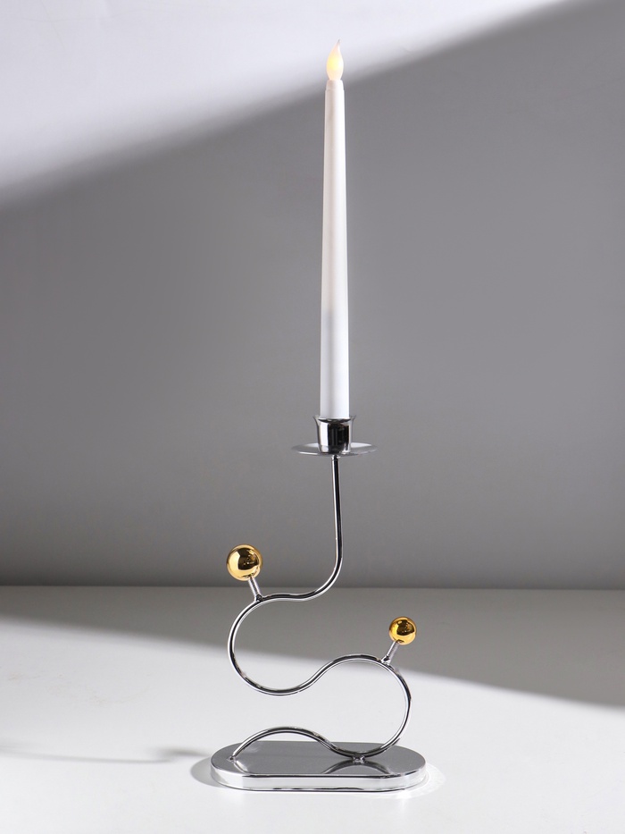 Подсвечник металл на 1 свечу "Линия и шарики" серебро с золотом d=2,5 см 14,5х7,5х26 см