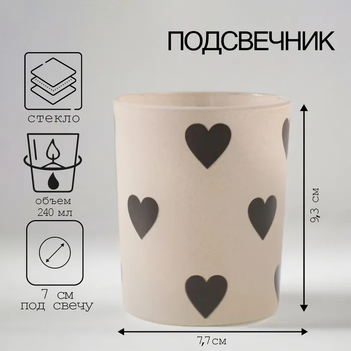 Подсвечник "СЕРДЕЧКИ" 9,3х7,7 см, 240мл