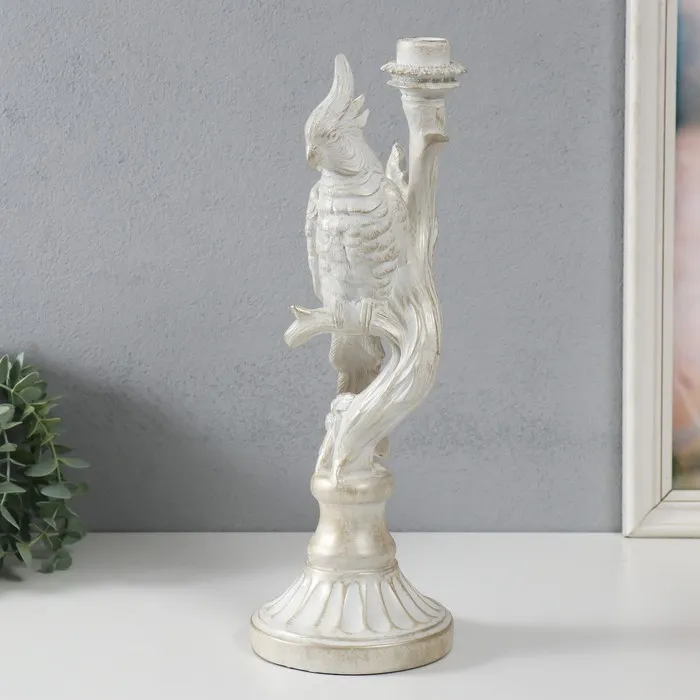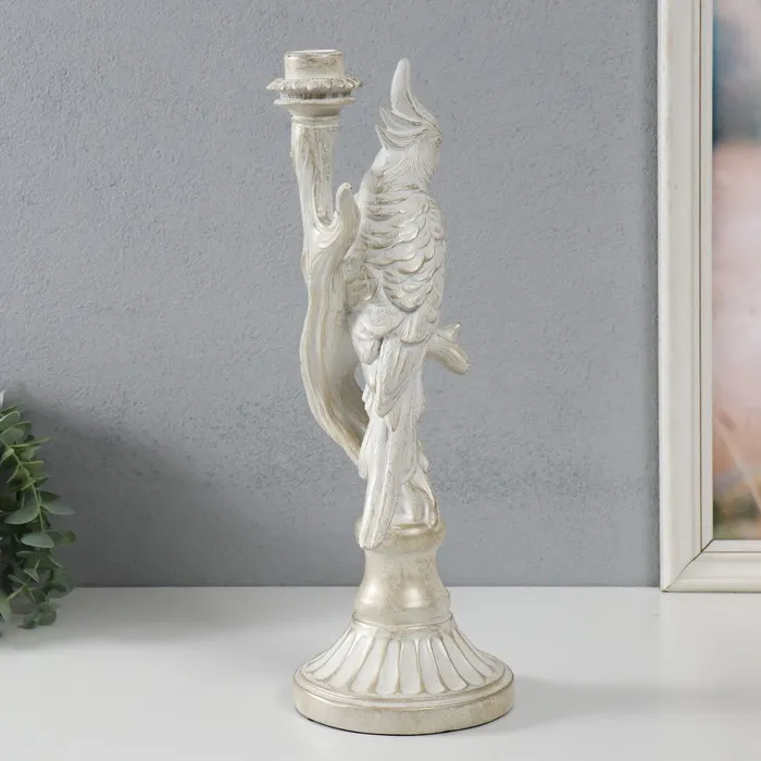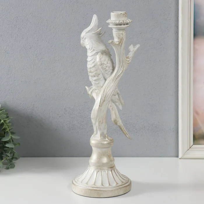 Подсвечник полистоун «Белый попугай на ветке», под металл, 12.4×12.2×36 см — Характеристики