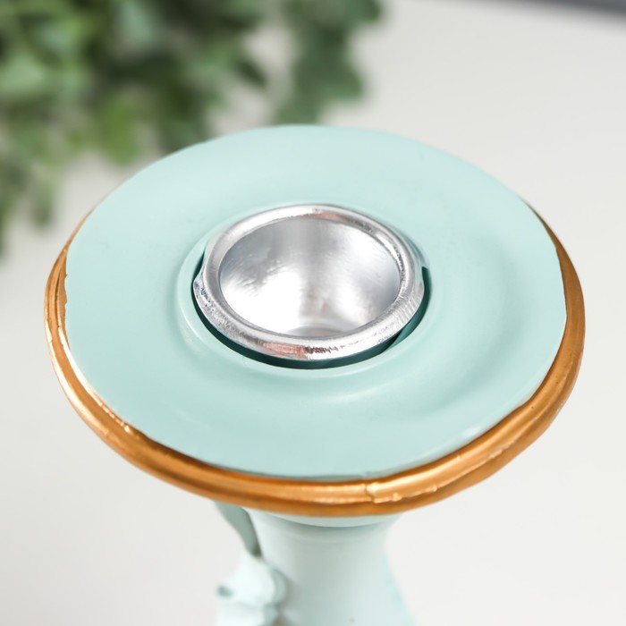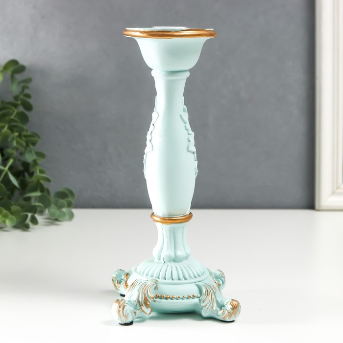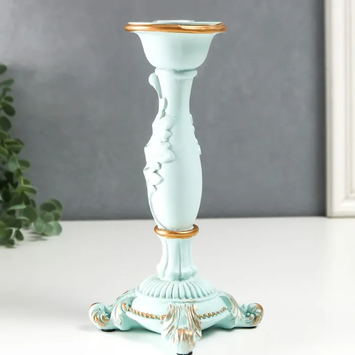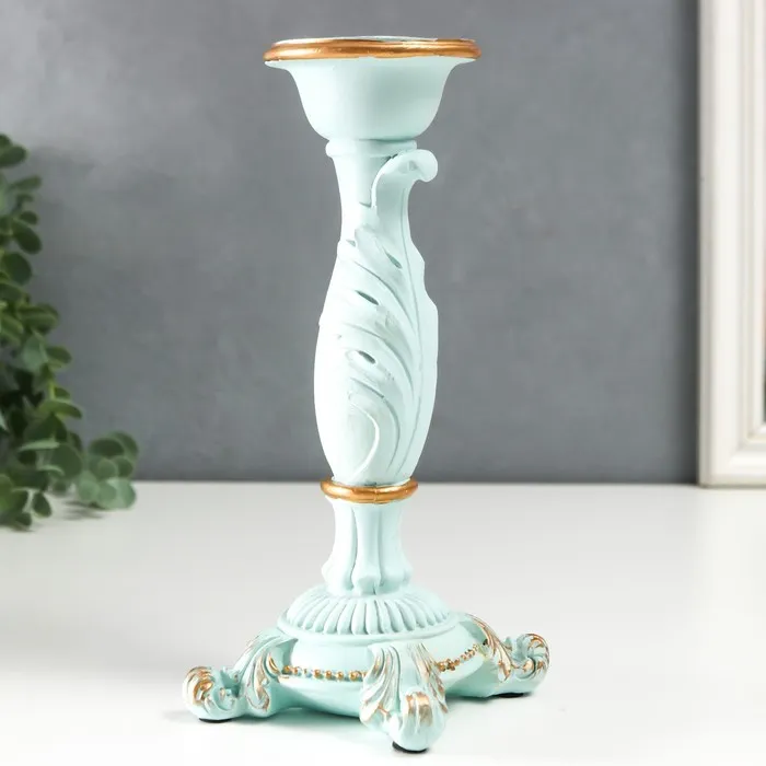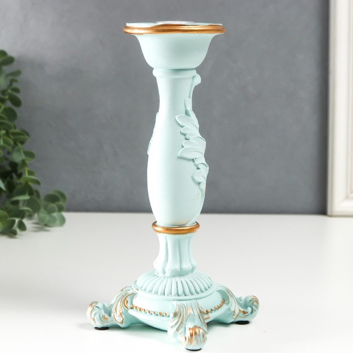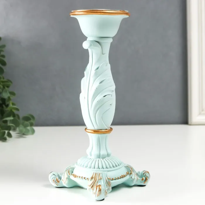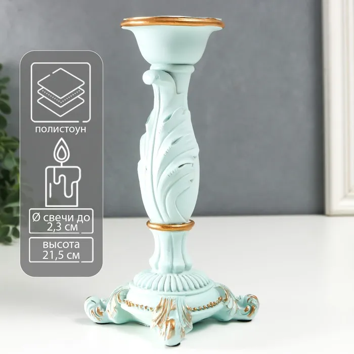Подсвечник полистоун на 1 свечу "Пышный лист" нежно-голубой 21,5х9х9 см — Характеристики
