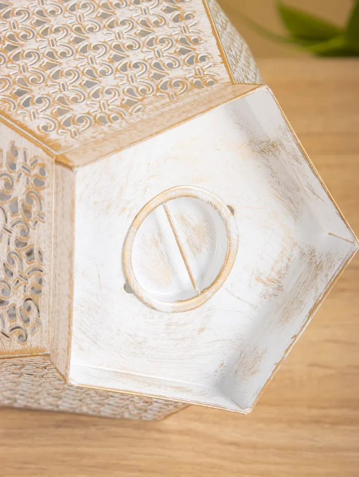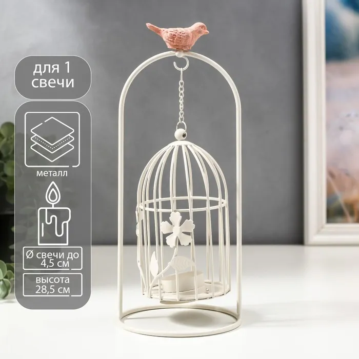 Подсвечник металл на 1 свечу "Клетка с цветочками с розовой птицей" белый 28,5х12х12 см