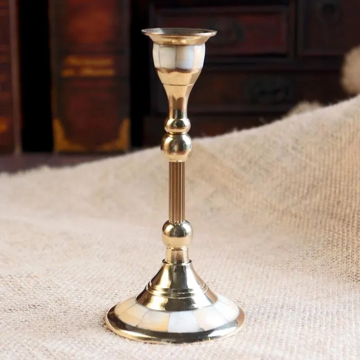 Подсвечник "Путь" латунь, перламутр 7х7х14 см
