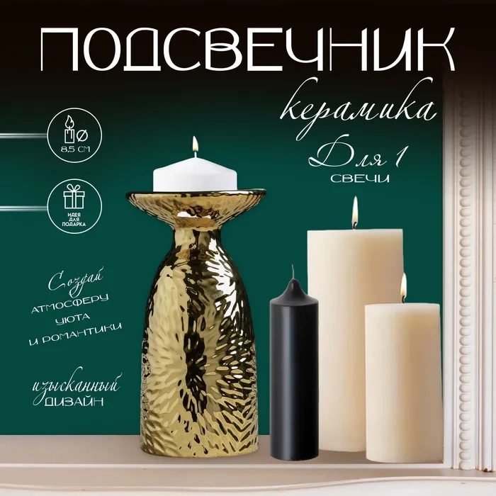 Подсвечник «Ретро серия Аликанте», 7.5×7.5×26 см, алюминий — Характеристики