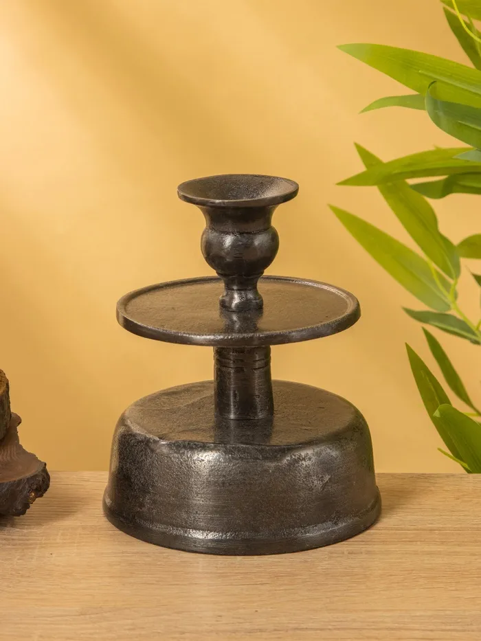 Подсвечник из кокоса, 15×15×13 см, чёрный
