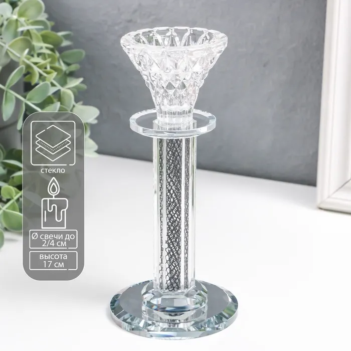 Стеклянный подсвечник на 1 свечу «Узорный бутон», на ножке, d=2 см и 4 см; 7.7×7.7×17 см
