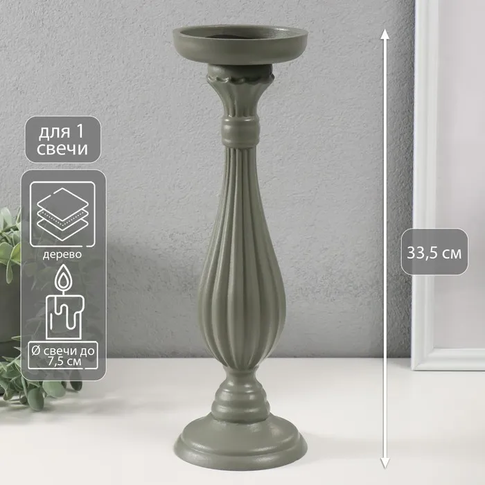 Деревянный подсвечник на 1 свечу «Элегант», серый, 12.5×12.5×33.5 см