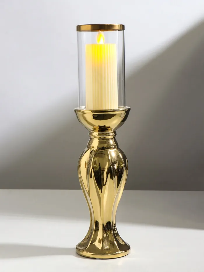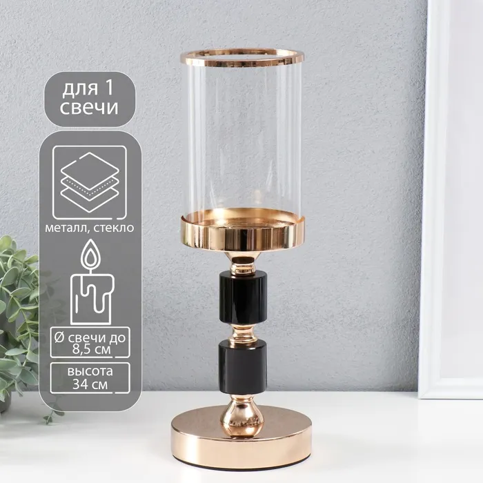 Подсвечник на 1 свечу «Версаль», керамика, стекло, d=7.5 см, золото, 9.5×9.5×38.5 см