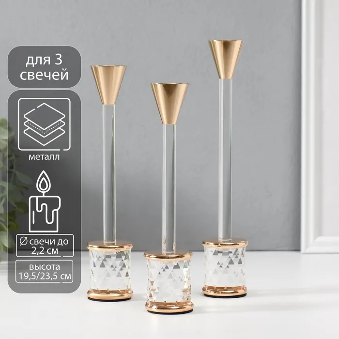 Подсвечник металл на 1 свечу «Геометрия», d=2.2 см, набор 3 шт., h=23.5 см, 21.5 см, 19.5 см