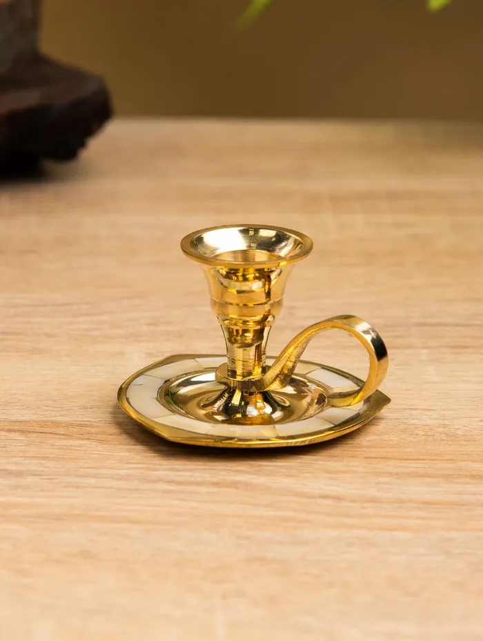 Подсвечник на 1 свечу с блюдцем, 6.5×6.5×4 см, латунь