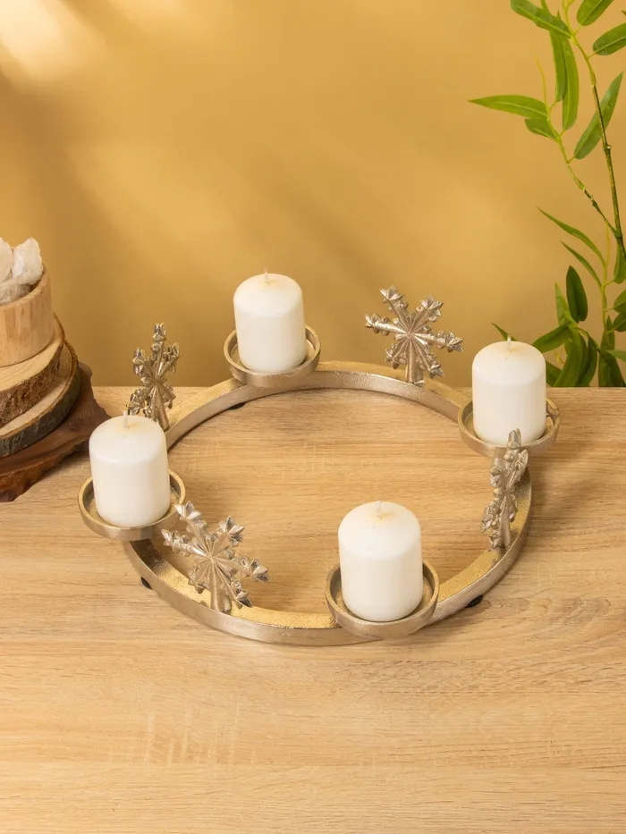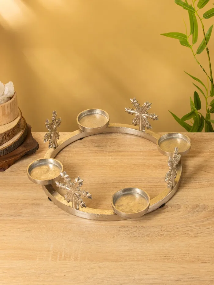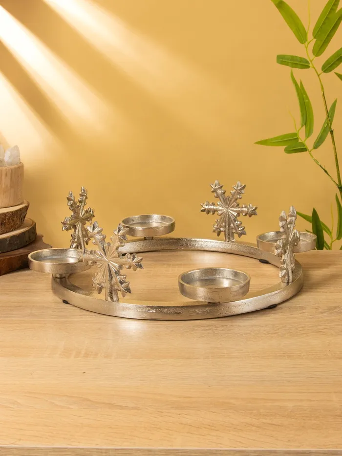 Подсвечник «Рождественский венок со снежинками», 32.5×32.5×11 см, алюминий