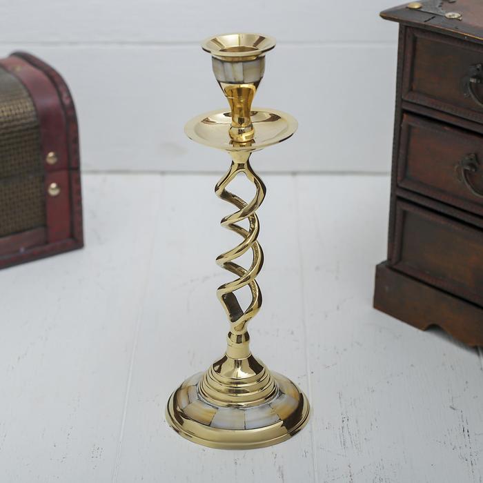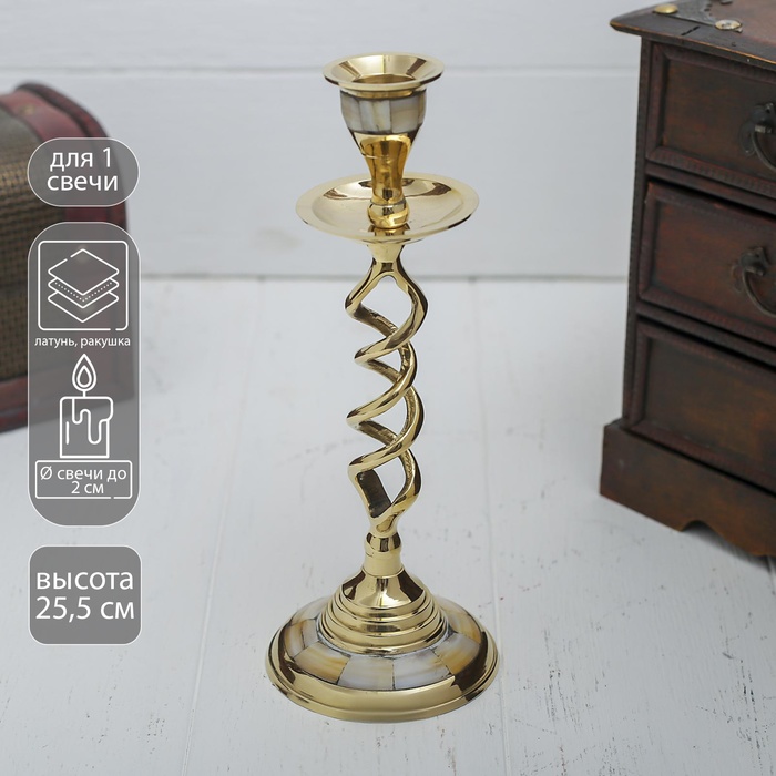 Подсвечник с перламутром "Виражи" на 1 свечу, латунь 7,5х7,5х20,5 см — Характеристики