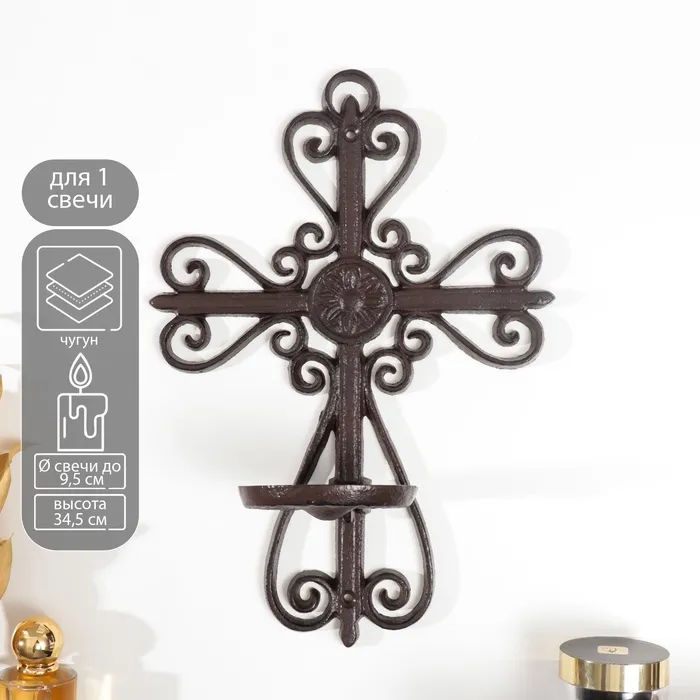Металлический подсвечник на 1 свечу настенный «Кельт», чугун, 34.5×11.5×24 см