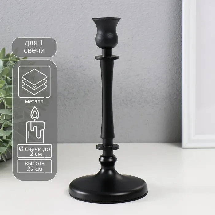 Металлический подсвечник на 1 свечу «Шанто», d=2 см, чёрный, 10×10×22 см