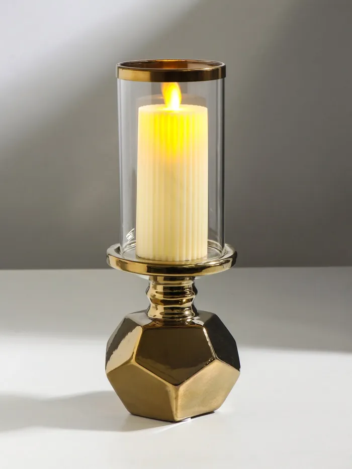 Подсвечник на 1 свечу «Грани», керамика, стекло, d=7.5 см, золото, 10.5×10.5×27 см