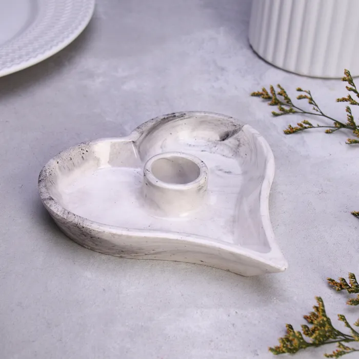 Подсвечник "Сердце" из гипса,14х2,5см,мрамор с чёрными полосками — Характеристики
