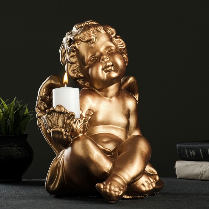 Подсвечник "Ангел сидя в руке" 26х21х30 см бронза, для свечи d=6 см