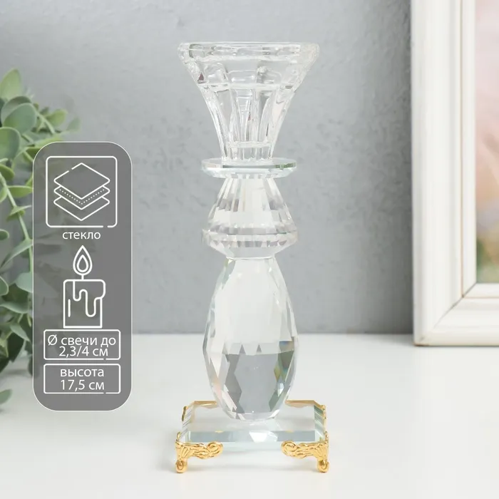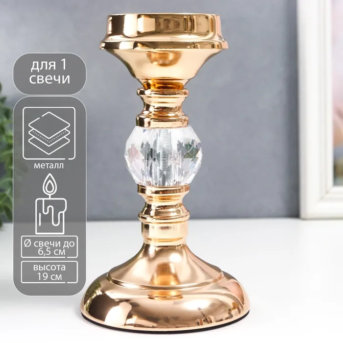 Подсвечник на 1 свечу «Фантазия», пластик, стекло, 6×6.3×6.3 см, золото