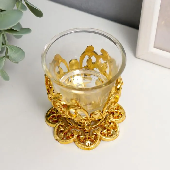 Подсвечник стекло 1 свеча "Узор", цвет золотистый — Характеристики