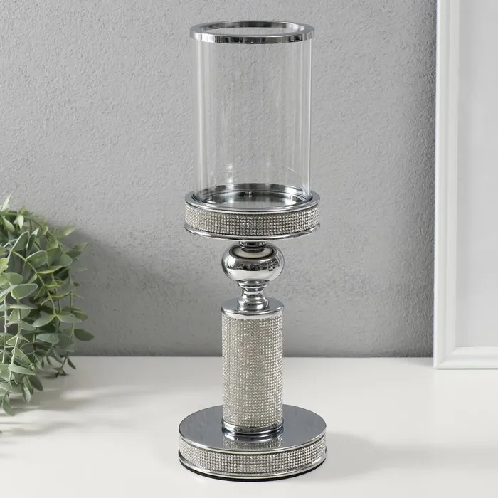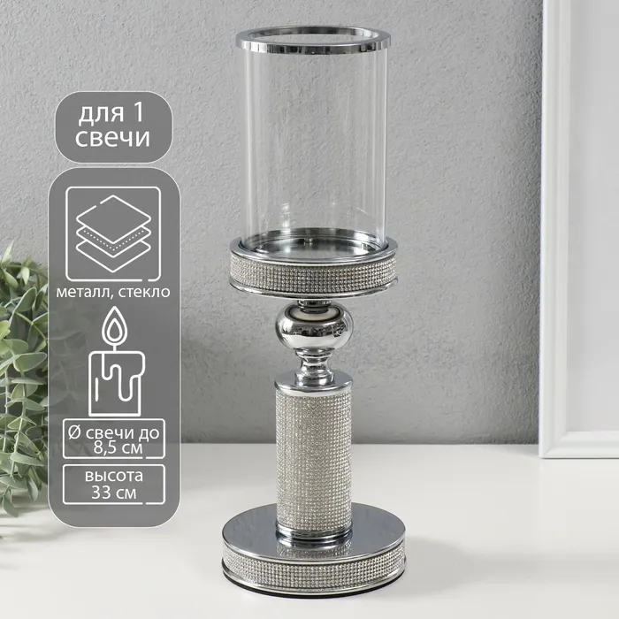 Подсвечник стекло, металл на 1 свечу "Дэниз" на магните d=8,5 см, серебро 11,8х11,8х33 см — Характеристики