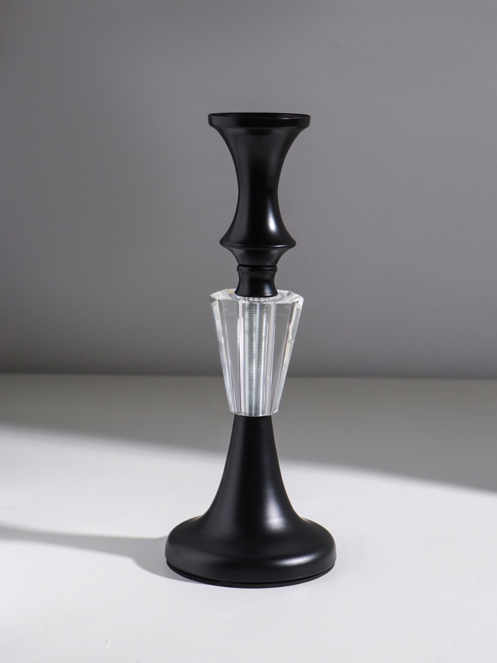 Подсвечник стекло, металл на 1 свечу "Кристалл. Классика" чёрный d=5 см 9,5х9,5х24 см — Характеристики