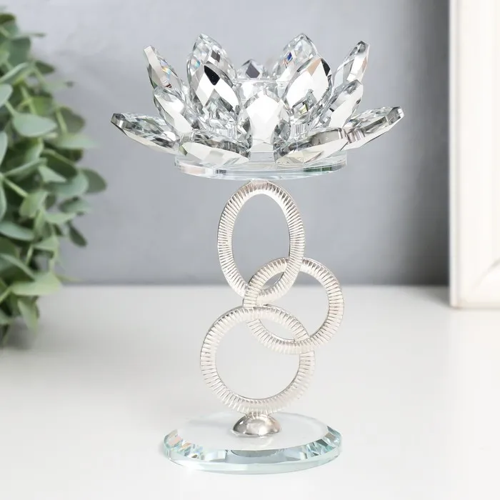 Подсвечник стекло, металл на 1 свечу "Лотос на кольцах" d-4 см 11,2х9х16,5 см — Характеристики