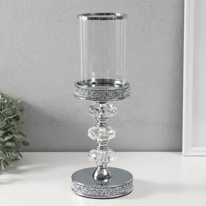 Подсвечник стекло, металл на 1 свечу "Вива кристалл" на магните, серебро 11,8х11,8х33 см — Характеристики