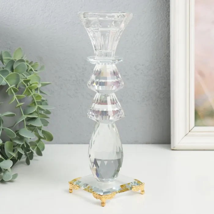 Подсвечник стекло на 1 свечу "Бутон и два листочка" прозрачный d=2,3 и 4 см 6,5х6,5х20,2 см 970283 — Характеристики