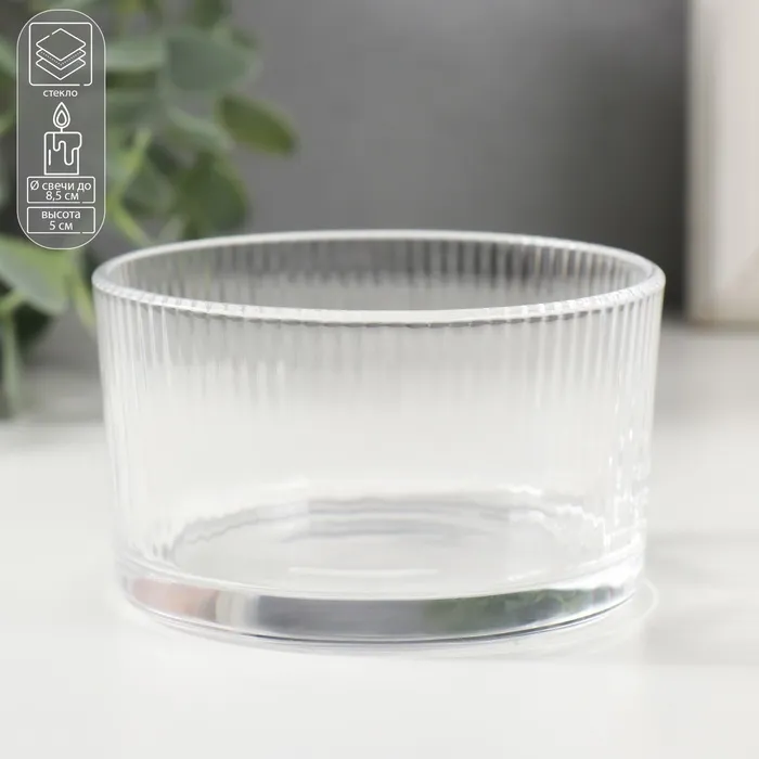 Подсвечник стекло на 1 свечу "Круглый ребристый" прозрачный 8,8х8,8х5 см — Характеристики