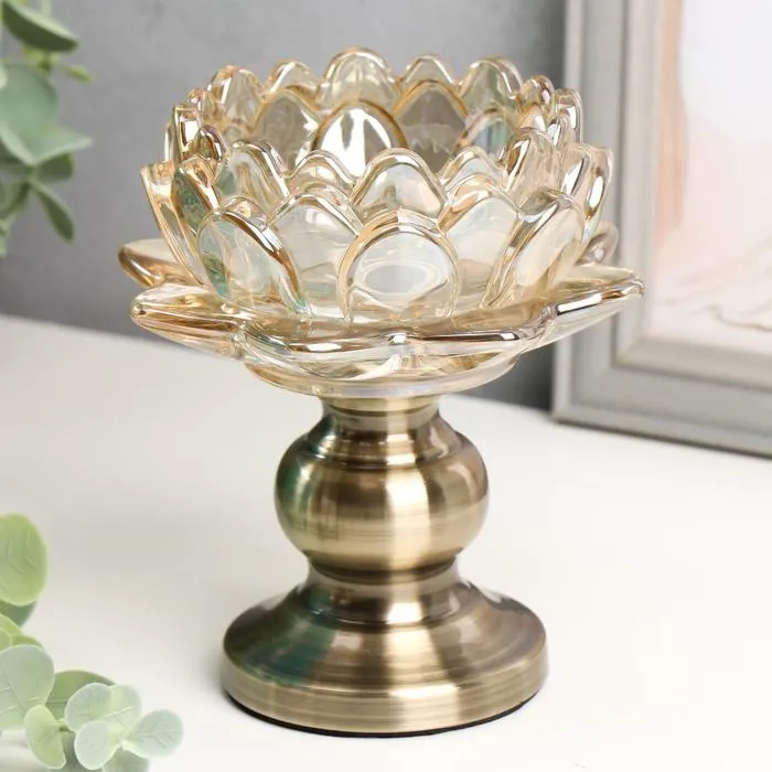 Подсвечник стекло на 1 свечу "Лотос" на ножке карамель 12,5х12х12 см — Характеристики