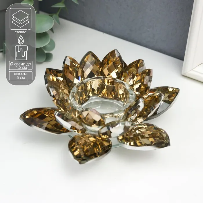 Подсвечник стекло на 1 свечу "Лотос оливковый" 5х13,5х13,5 см — Характеристики