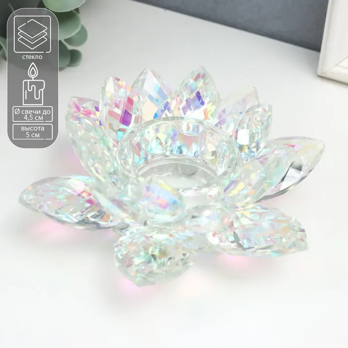 Подсвечник стекло на 1 свечу "Лотос прозрачный с голографией" 5х13,5х13,5 см — Характеристики