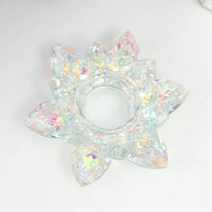 Подсвечник стекло на 1 свечу "Лотос прозрачный с голографией" 5х13,5х13,5 см