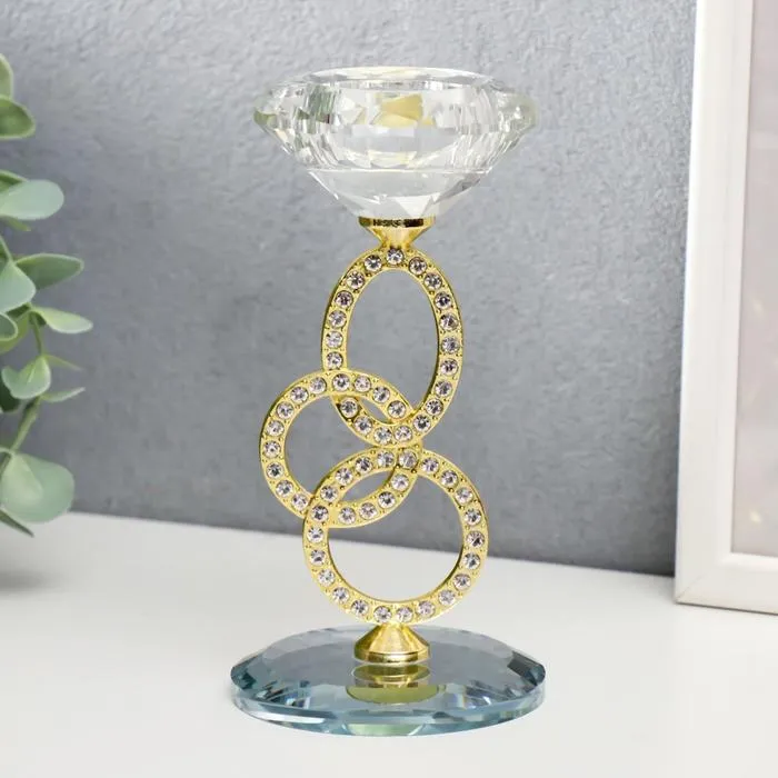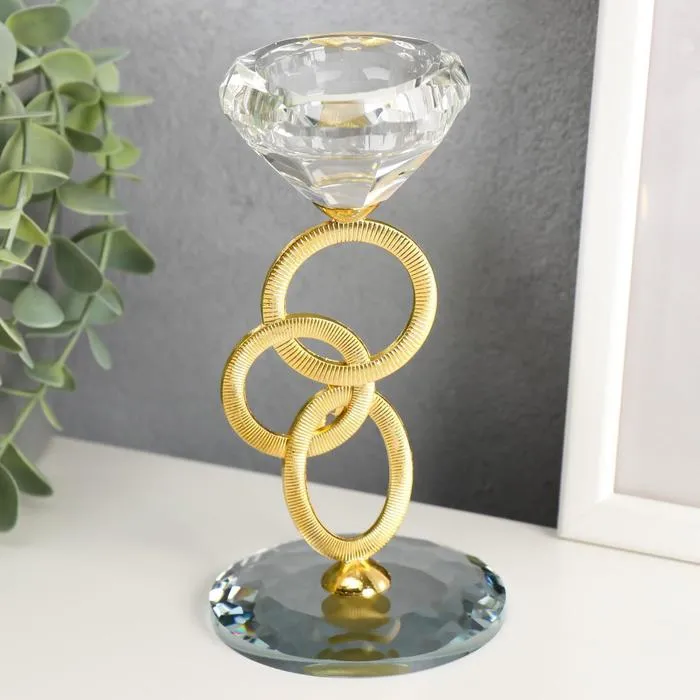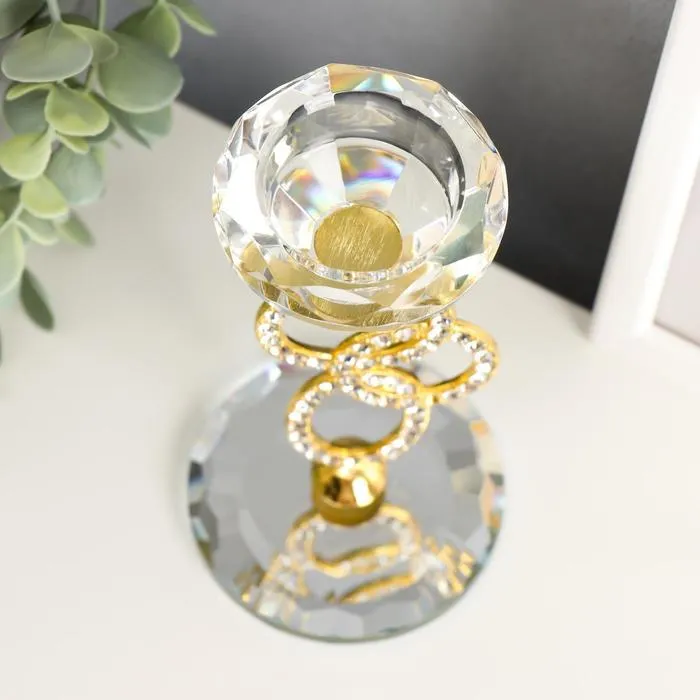 Подсвечник стекло на 1 свечу "Сплетение колец" стразы золото 16,5х8х8 см — Характеристики