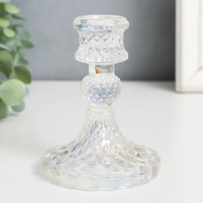 Подсвечник стекло на 1 свечу "Женева" d-2,2 см прозрачный голография 10,5х7,7х7,7 см — Характеристики