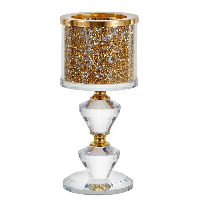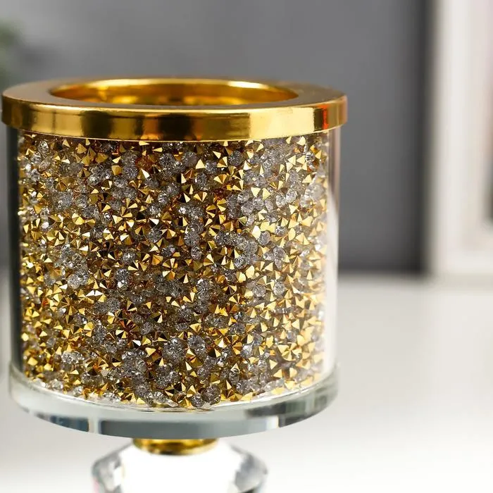 Подсвечник стекло на 1 свечу "Золотые камешки" ножка с кристаллами 16,5х7,5х7,5 см — Характеристики