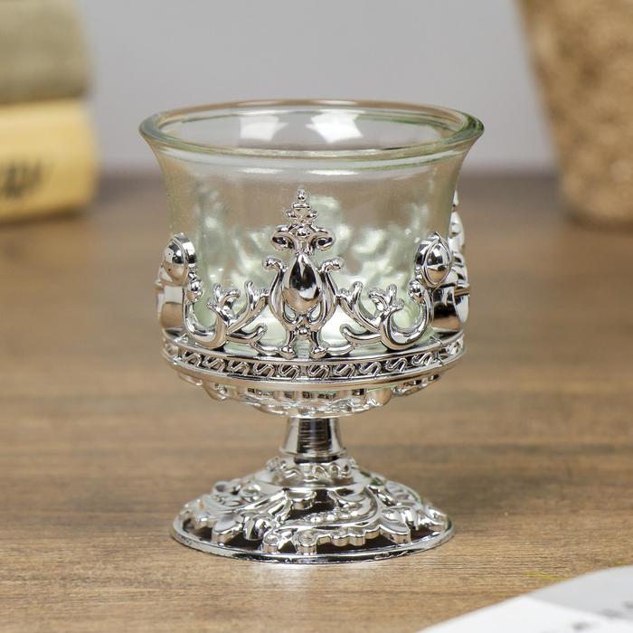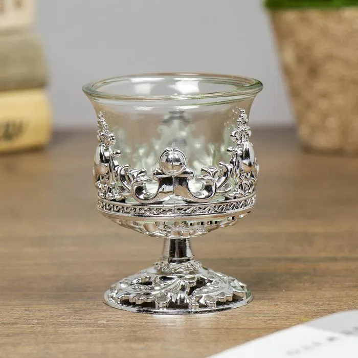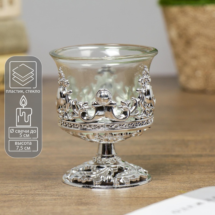 Подсвечник стекло, пластик на 1 свечу "Вьюнок" бокал на ножке серебро 7,5х6х6 см — Характеристики
