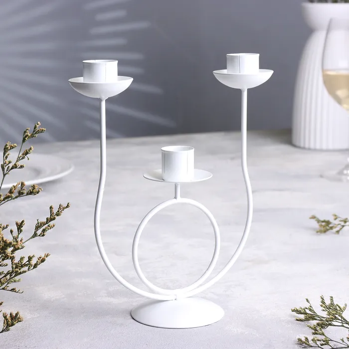 Подсвечник "Трио" металл на 3 свечи, 17х18 см, белый — Характеристики