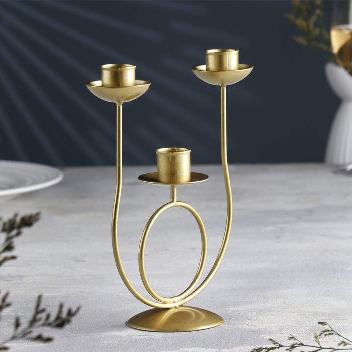 Подсвечник "Трио" металл на 3 свечи, 17х18 см, золотой — Характеристики
