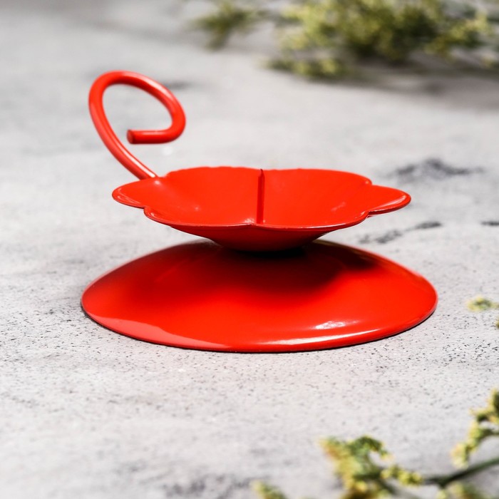 Подсвечник "Цветок Н" металл на 1 свечу, 9х3,5 см, красный